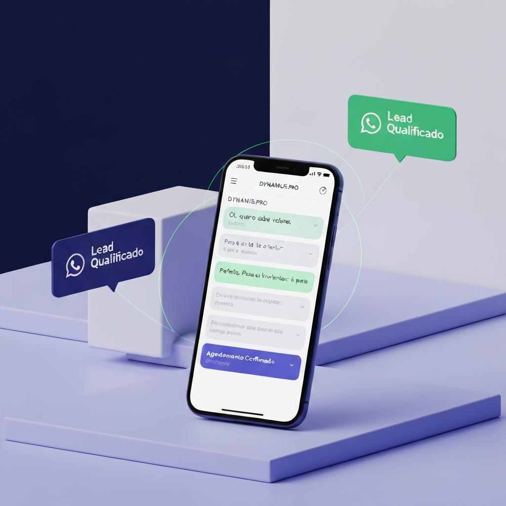 Em vez de só “responder no WhatsApp”, o Dynamus cria um fluxo de entrada inteligente que transforma cliques em oportunidades prontas para o seu time.